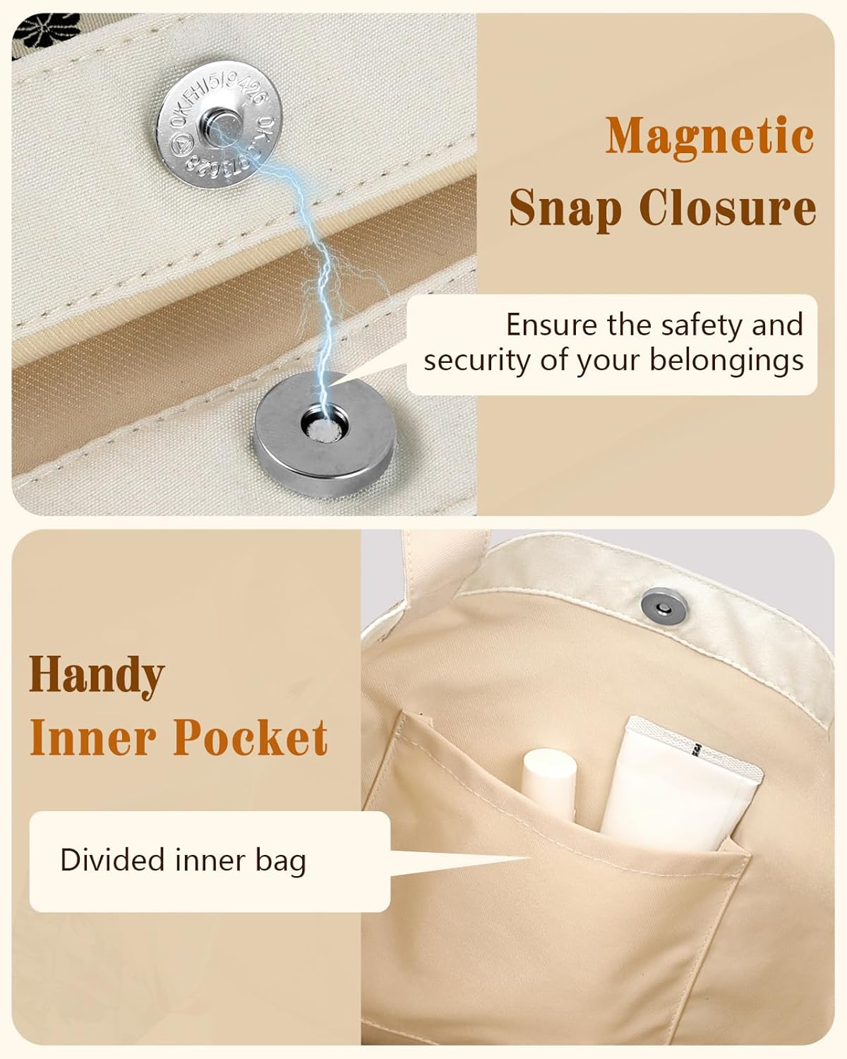 Customers love the tote bag’s design, particularly its pretty pattern, and appreciate its silky fabric that feels well-made. The bag fits more than expected and is super soft, with customers noting its nice colors and durability. They find it to be a great gift option.