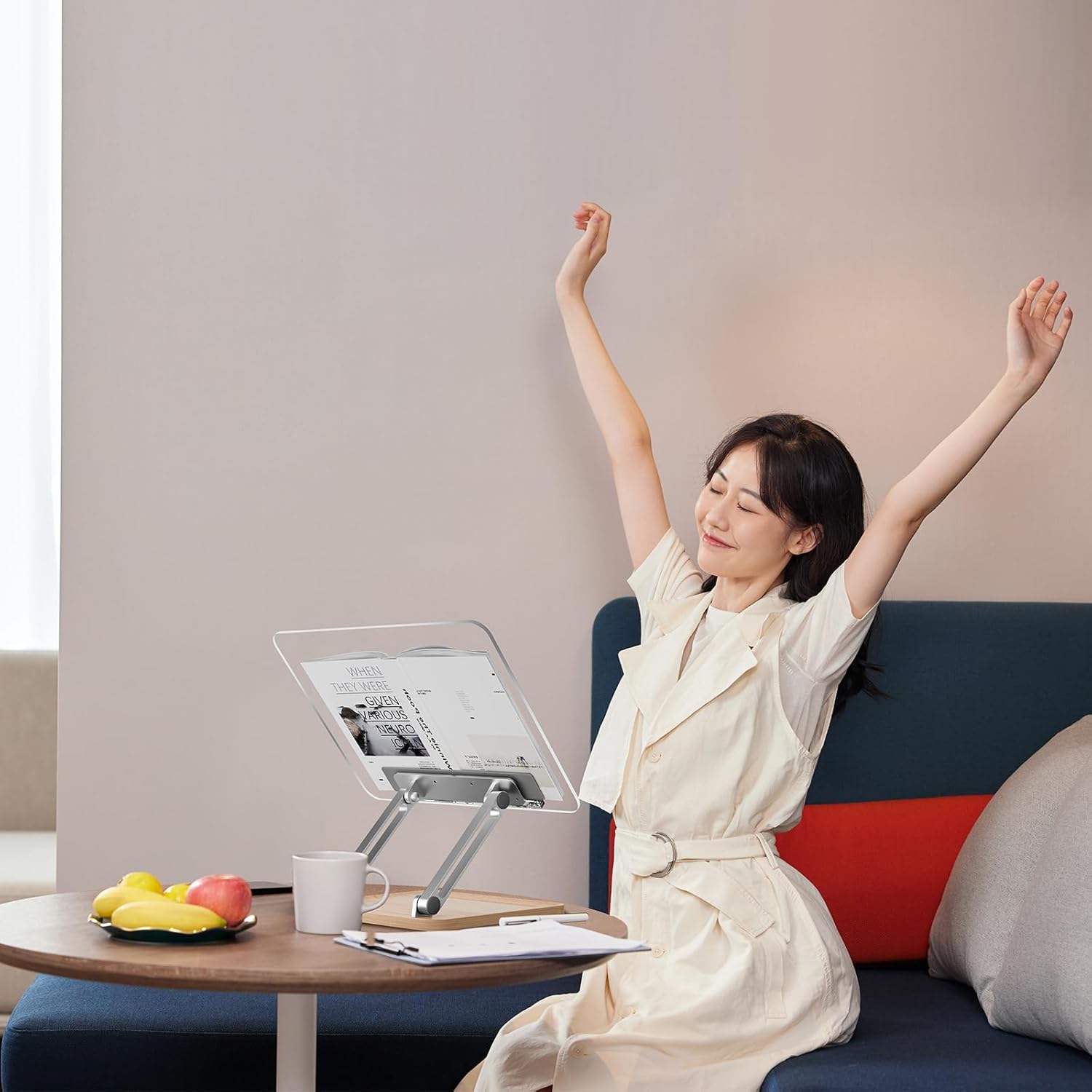 조정 가능하고 안정적임: 알루미늄 아이콘이 있는 책 컨테이너와 두 개의 기둥이 지지됩니다. 사용자에게 꼭 맞는 높이와 각도를 조절하여 다양한 사용모드로 간편하게 변경 가능