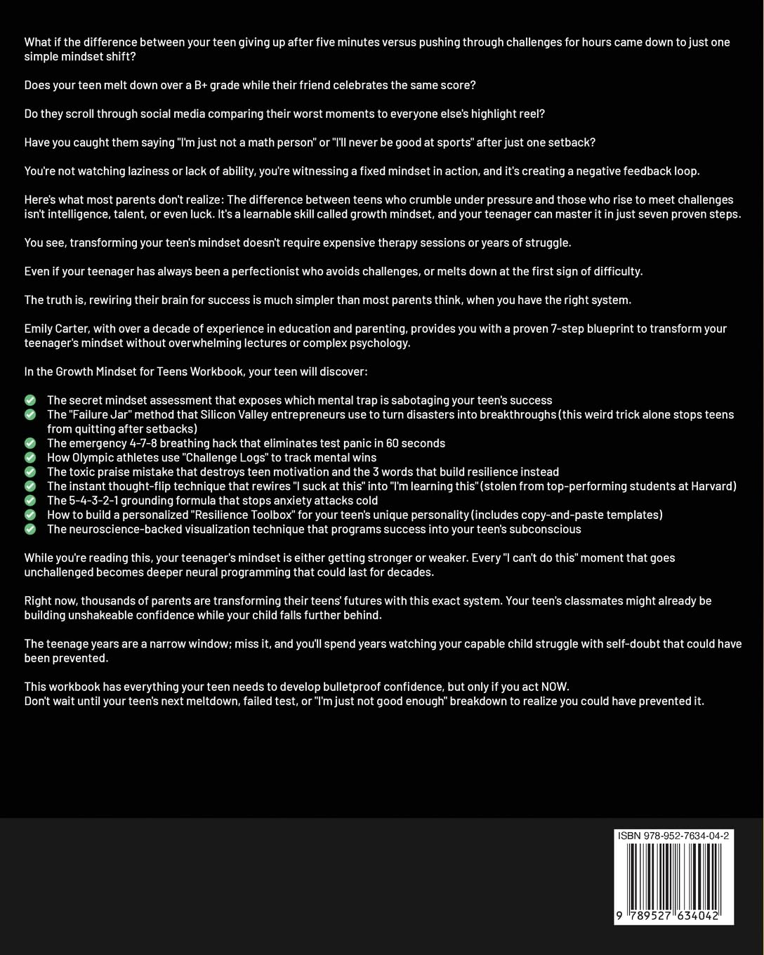 Customers find this workbook helpful for building a stronger mindset, with clear explanations of what a growth mindset is and guidance on cultivating positive thinking. The book is designed specifically for teenagers and is practical, with one customer noting it’s packed with tools that teens can actually use. They appreciate its simple 7-step format and find it an excellent read, with one review highlighting its supportive yet non-preachy tone. Customers also value its resilience-building content.