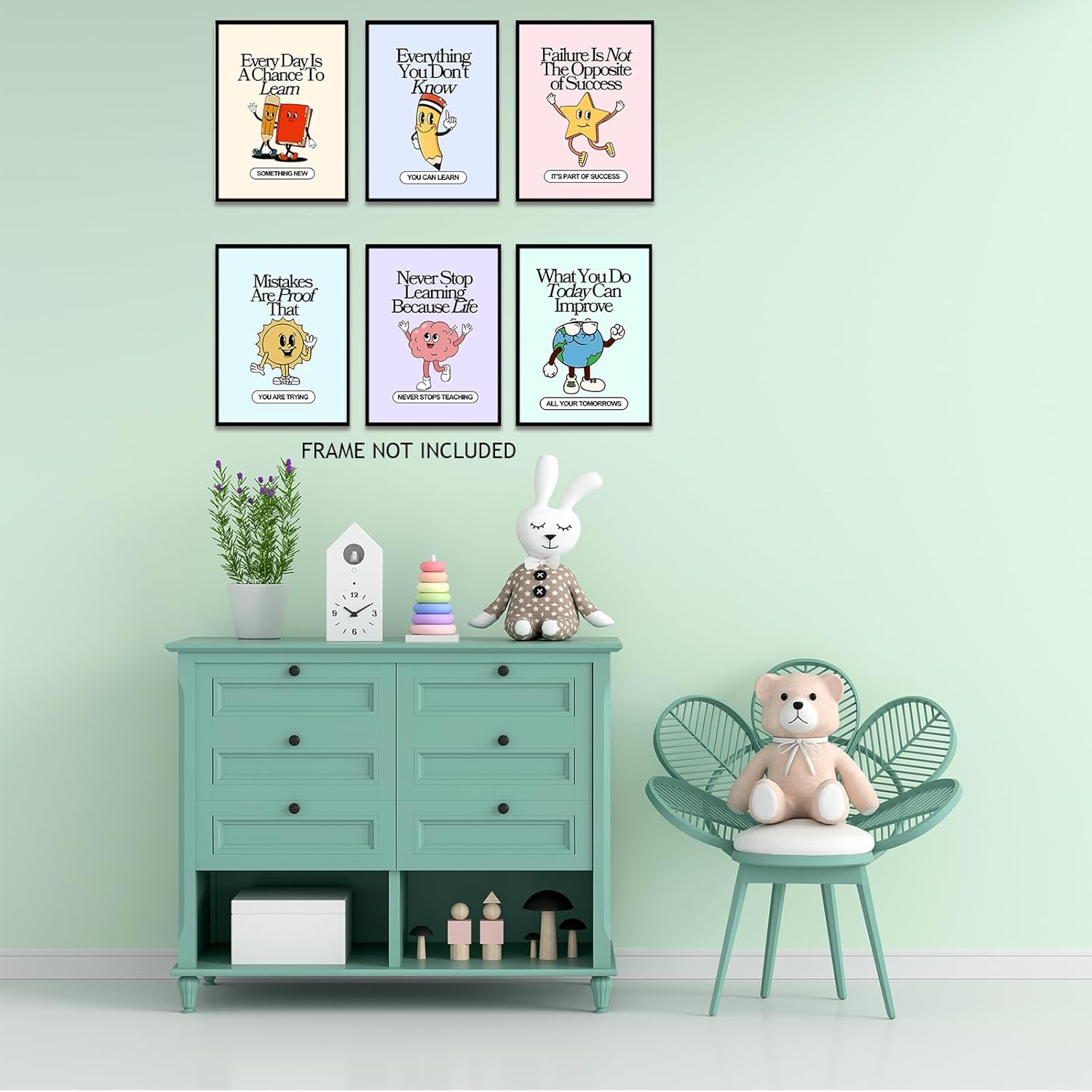 갈색 환경을 추가하기 위해 거실 벽에 비키 포스터를 만듭니다.