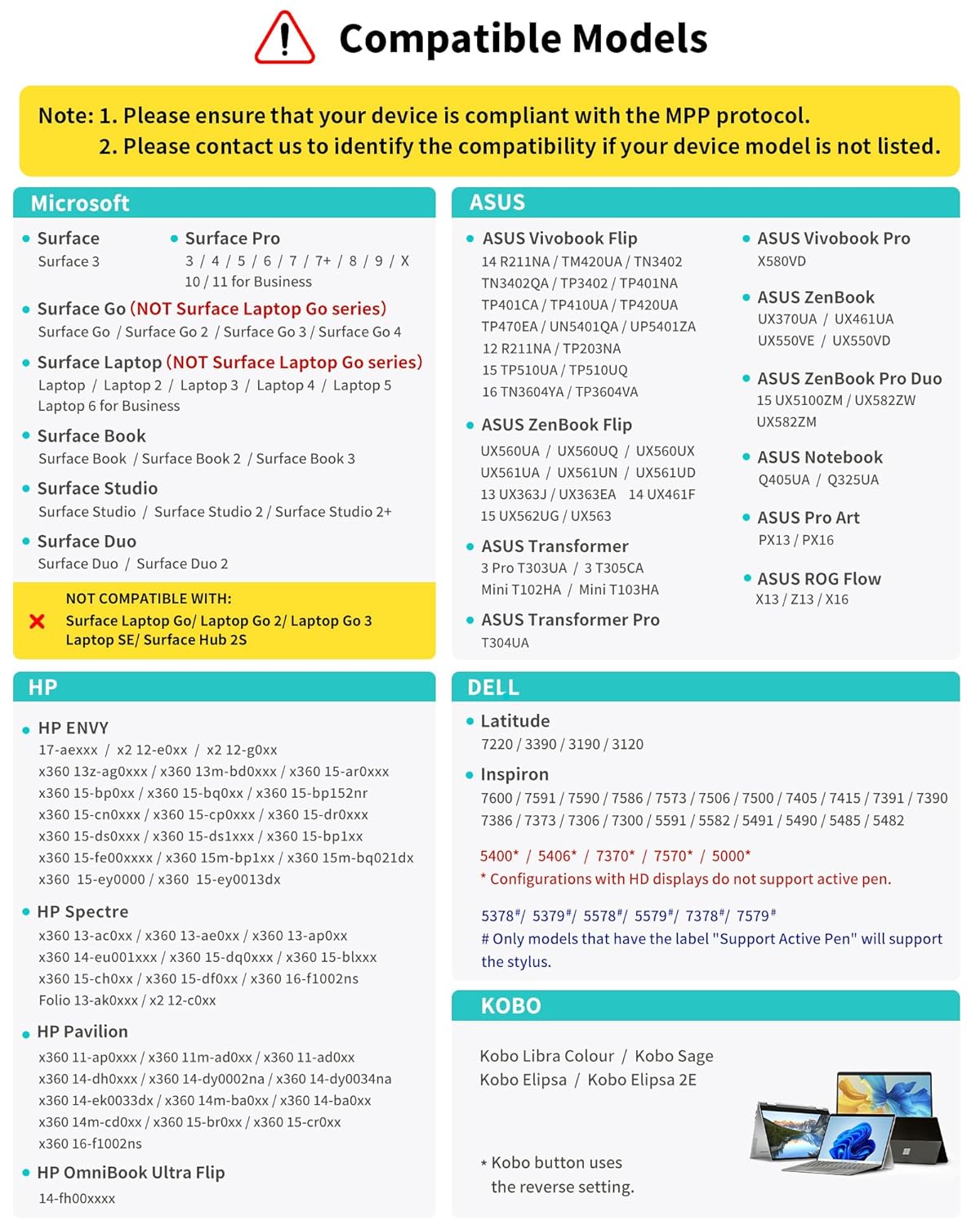 Customers find the input pen works well, with one noting it’s more responsive than other Surface styluses, and many confirming it’s a suitable replacement for original pens. The device is compatible with various devices including Kobo Libra, Surface Duo, and MS OneNote, and customers appreciate its rechargeable battery, eraser function, and strong magnetic attachment. While customers consider it good value for money, some report durability issues with the tip breaking off.